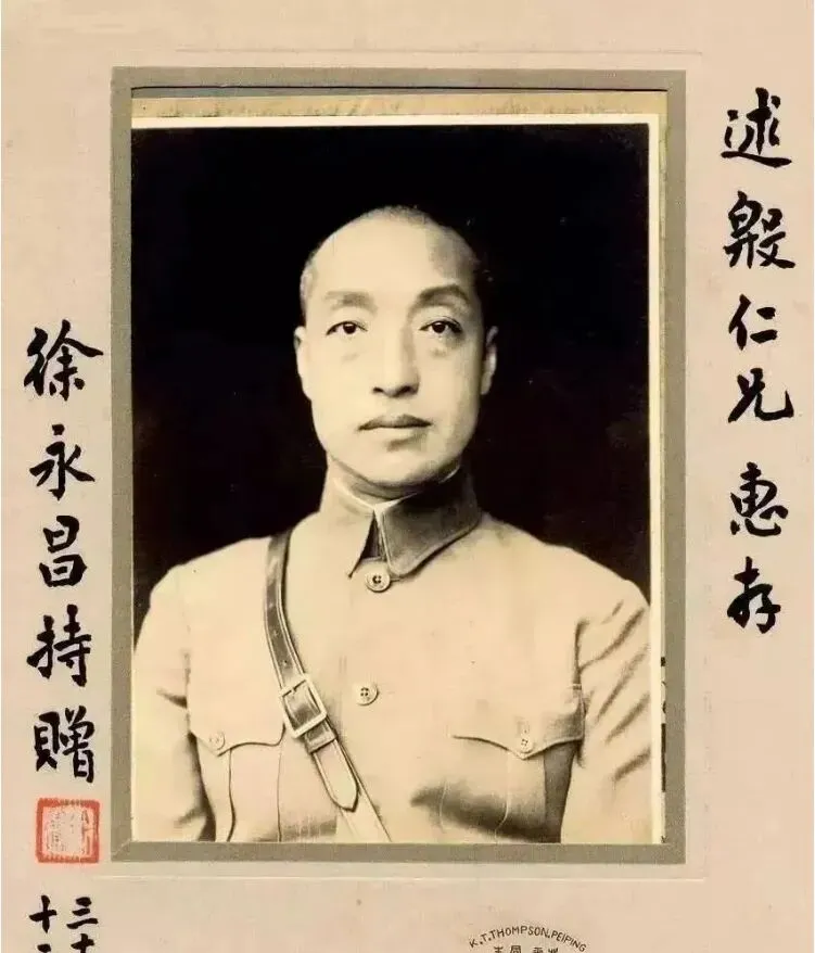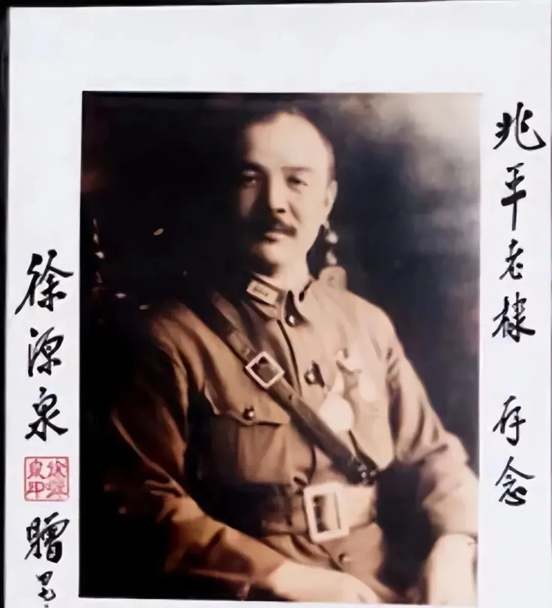 这张照片上是徐源泉,肩章和皮带位置都一丝不苟,整张脸全神贯注望着前方,底色给人感觉很规整,仿佛就是在开会台上被人喊了名字,表情带着一点点紧张,也有自信,一看就是干大事出过力的人,照片颜色泛灰,带着时间留下的平和劲。