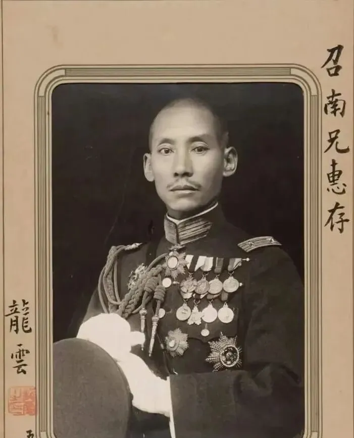 龙云的这身行头绝对是场面货,墨色军服,大襟勋章一挂一排,白手套本来该算外国进来的老规矩,结果在这些老照片里变成标配了,帽子拿在手,表情硬朗,嘴角那道小胡子,跟身上的装饰一样挺拔,家里老人看了直乐,说这种架势你搁现在年会会场去,绝对C位。