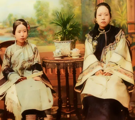 清末民初,晚清时期的老照片,两个贵妇的合影照,这颜值放在如今也是美女.