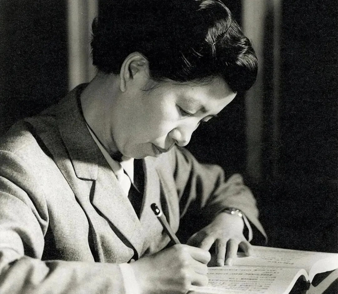图里这身灰色西装扎得利落的人,正是那会儿年轻气盛的江青,低头专心写着东西,台灯光下一张纸、一支钢笔握在手里,袖口那小小的表还清清楚楚,做事情专心到什么程度,连头发的分缝都不会乱,她写字时候没人敢上前吱声,房间里就剩沙沙的笔音,有时候我妈还悄悄说过,“你看人家那劲儿,不认字都能感受出认真”,现在办公室再多人凑一起,也很难有这么沉下心的状态了。