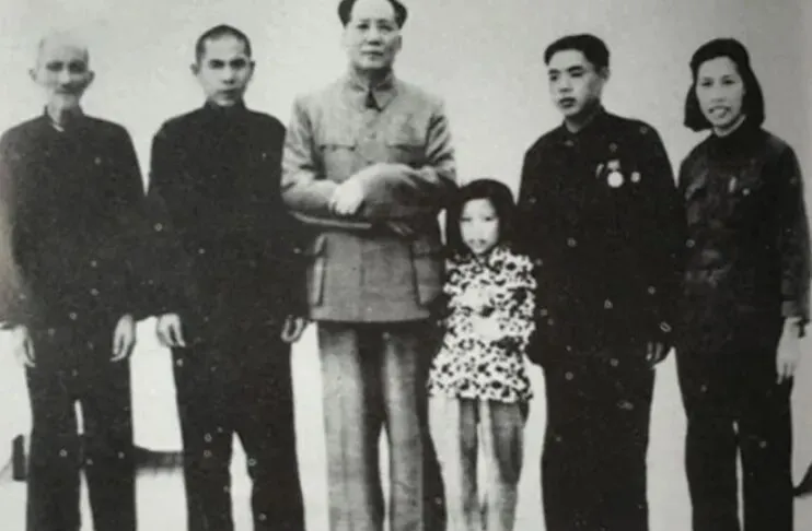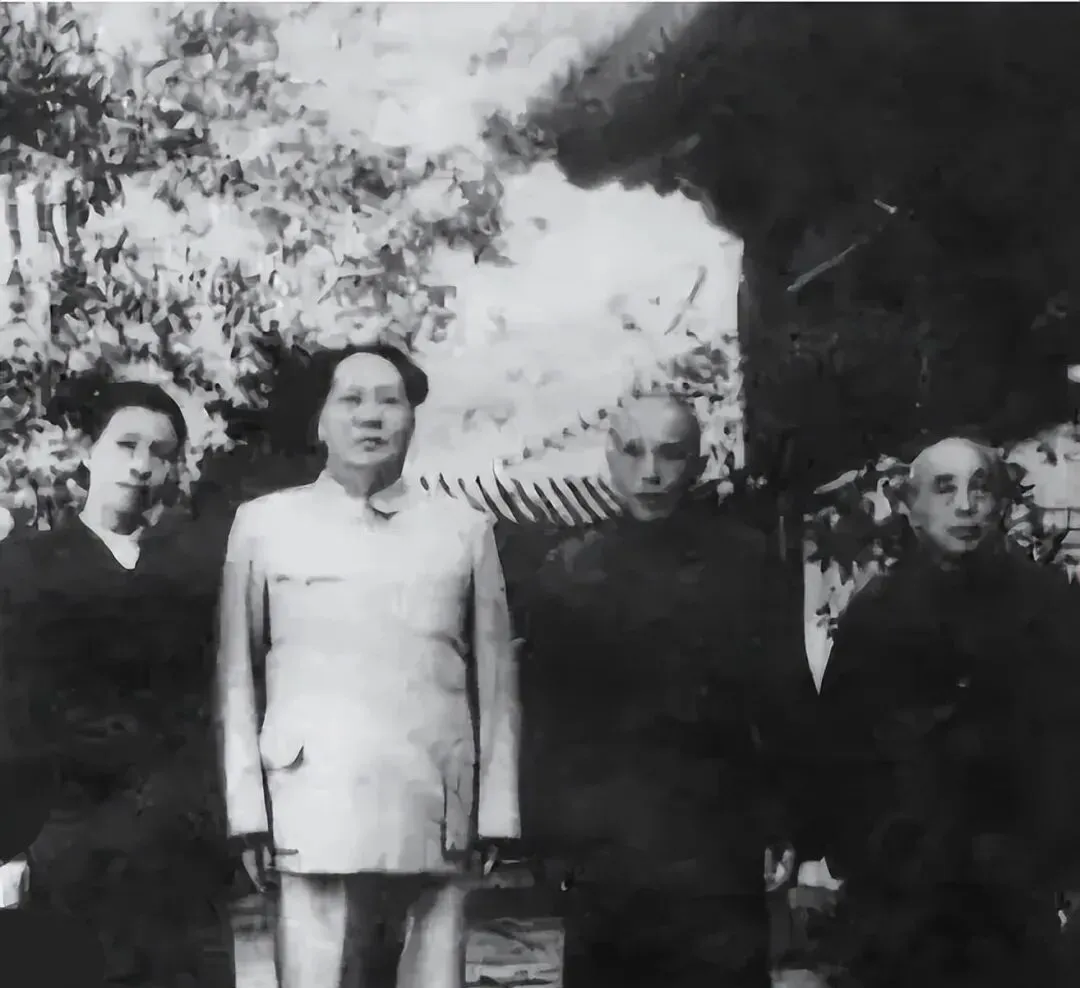 再来看这一张,这可不是随便的全家福,主席、江青和毛泽嶸一家人合在一块,背景是光打得白花花的屋外,站位都规整,领口扣得死死的,江青和主席分列左右,脸上带笑,毛泽嶸是主席堂弟,家里人不常聚齐,照片成色老早就看出了年代,那个时候家里能凑这样一张合影,得是大事,一个团圆两个世界,现在的年夜饭合影都是菜一半人一半,谁还能这么规矩站着留下影子,那股庄重劲儿,也只能从这一代人的照片里看见了。
