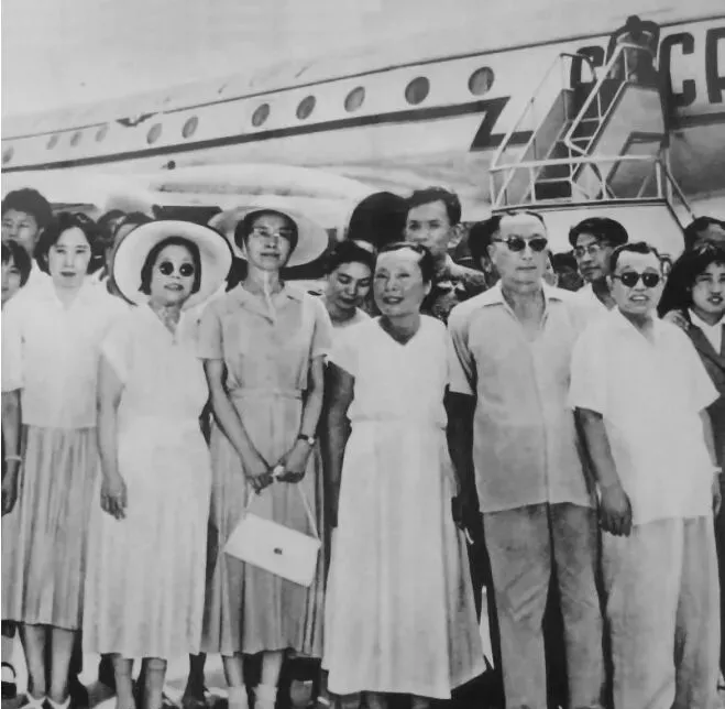 场面再热闹不过这一张了,机场停机坪边站着一排人,前排全是女的,中间有奔头的有淡定的,左边第一位是王光美,再过来是邓颖超,江青在中间靠右,穿着大衣,站姿笔挺,最右侧就是蔡畅,大家如果没听说过,她可是李富春的妻子,帽沿下的目光很有精神,那时候出趟国坐飞机要合影,女人们围在一起说说笑笑,倒有点像现在姐妹团出游,唯一不同的是,外边全是围观的群众,都穿着中山装、鸭舌帽,气氛不紧不慢,现在机场送机只剩拖拉箱的脚步声,很难再见谁能这么身体站得直、笑得从心里往外冒。