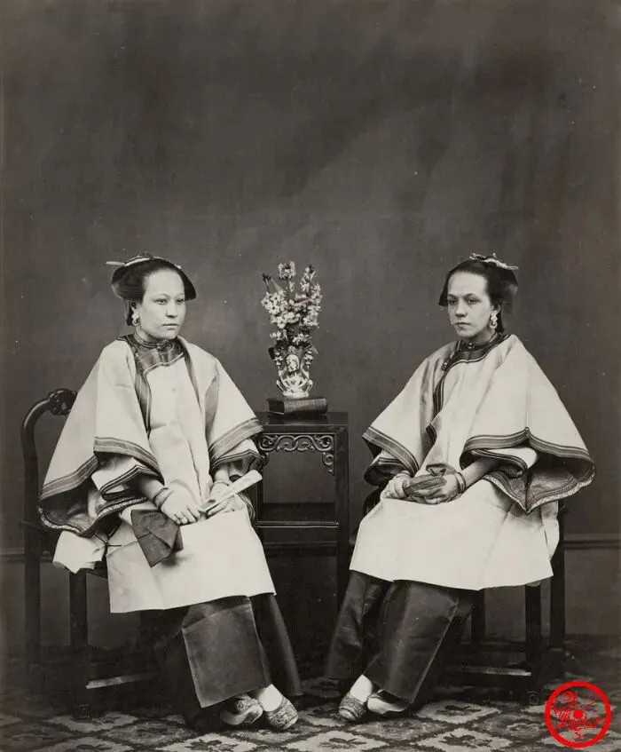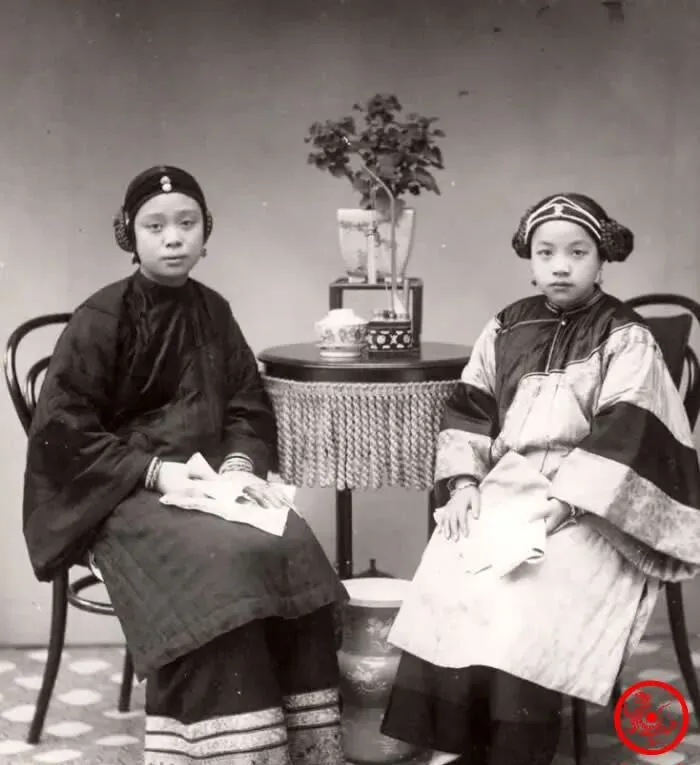 图里这两个身影,一左一右,穿戴看着一模一样,可多数人怕是没细看过,这就是典型的东南沿海客家女装扮,宽肩大袖遮得严严实实,发髻上插着花簪儿。再细说,左边的原本是咱自家人,右边那个其实是个“洋面孔”,换了中国衣衫,表情也学得板正,真要不说,谁能分得清。小时候家里来了客人,奶奶总爱端着老照片比划,“那会儿讲究,出门都得这样一身,蓬头垢面的没脸见人”。