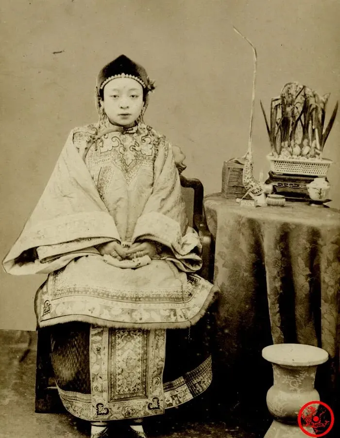 图上的姑娘穿的那件衣服,摸着就是厚实料子,花纹缠成团,一动不动坐着,脚底下微微露着三寸金莲,架势够足。旁边那桌子上水仙花、痰盂、水烟袋都小心放着,说是拍照,其实搭配半天场景,连茶杯都不能随便搁地上。她眼神怔怔的,奶奶看见总说,“别以为她们当年自在,穿那么多套,夏天都热得冒汗,姑娘家指甲也留不长,收拾起来比你还麻烦”。