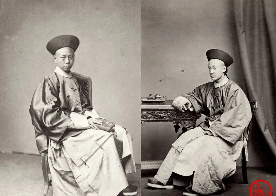 这两个人,一个挺拔,一个瘦削,衣冠全是官式打扮,顶戴花翎,绸布长袍,一看便知是读过书的。那年跟着使团出国,年龄也就二十开外,谁说以前没机会见外头,咱这遥远的上海滩照相馆,也曾留下过他们的身影。爷爷有时候感叹,“那年头能穿戴成这样,家里不是大富就是有才的,不是咱随便能坐的交椅”。
