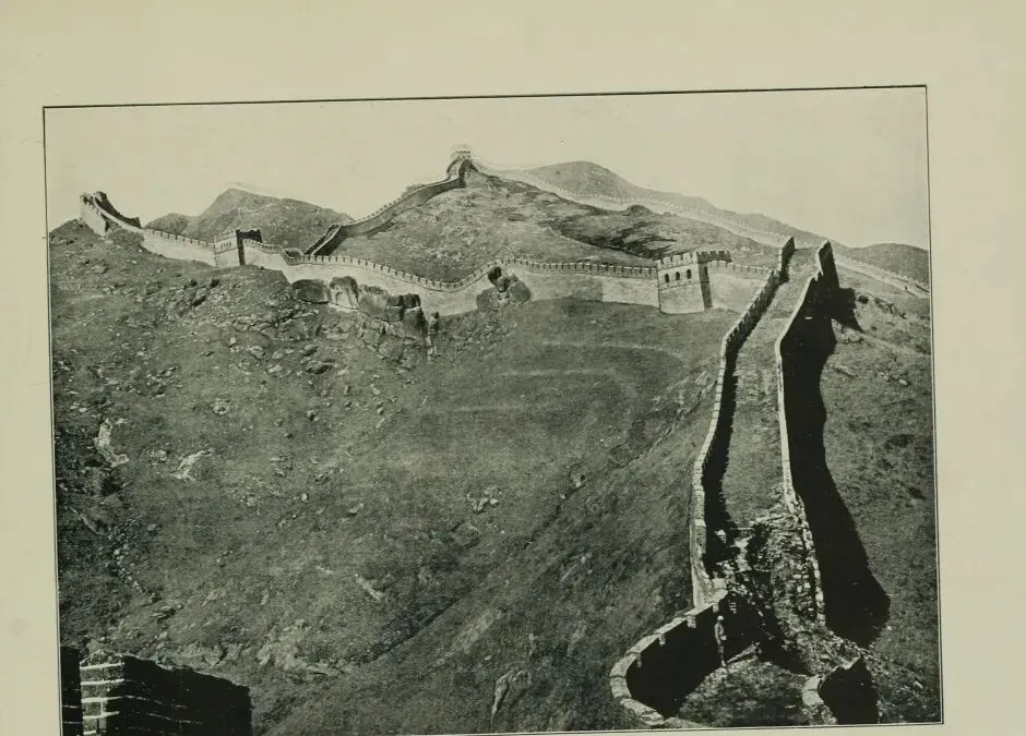 再拉远了就是万里长城,山岭上翻出一道白线,比画还工整,这种照片搁在现在算是航拍,不靠后期,都是把三脚架搬高了,石头上架着相机,人还得站稳,爷爷说那会儿登这么高的地儿得一上午,带着干粮和葱蘸酱,到了山顶才知道自己没白费劲,风尤其大,一口气打在脸上,像有人抡着扇子使劲扇,照相师傅得等老半天,等人全都站定,再按动快门。