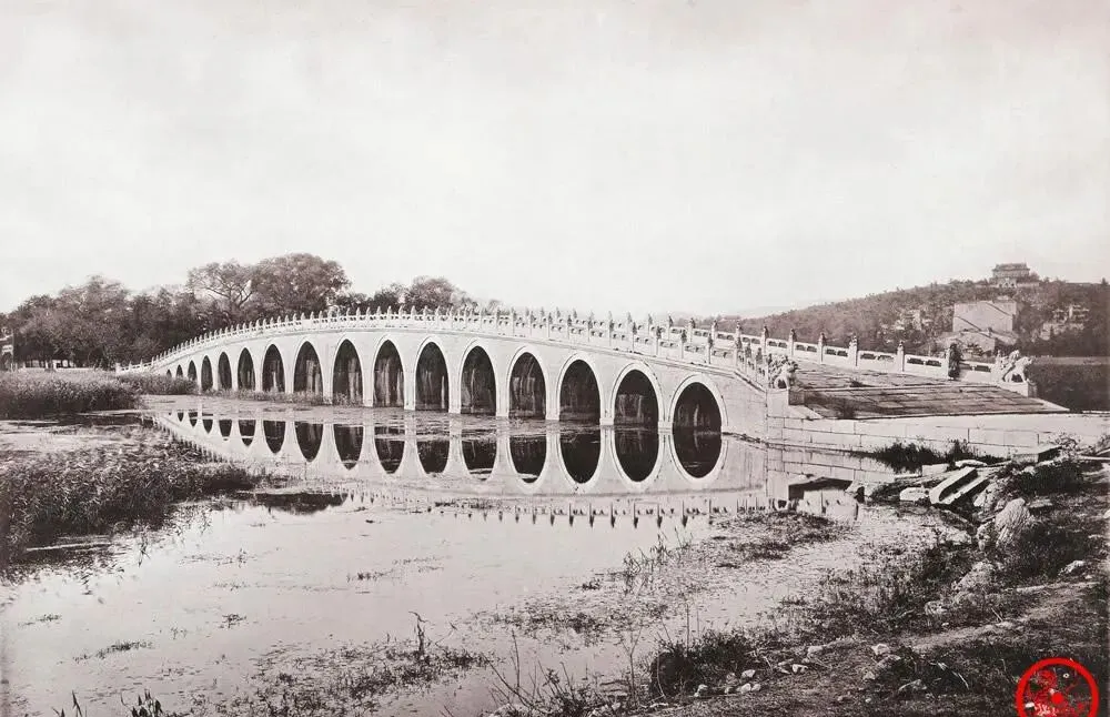 这桥一排十几座拱门,中间全压在水上,十七孔桥,想想那年头雕栏玉砌的手活儿可劲儿做,池塘倒映着桥影,分不出哪头是水哪头是石,一到傍晚,天边泛起颜色,白玉桥栏上坐几个闲人,老照片里没留声,心头却总有水拍石的轻响。