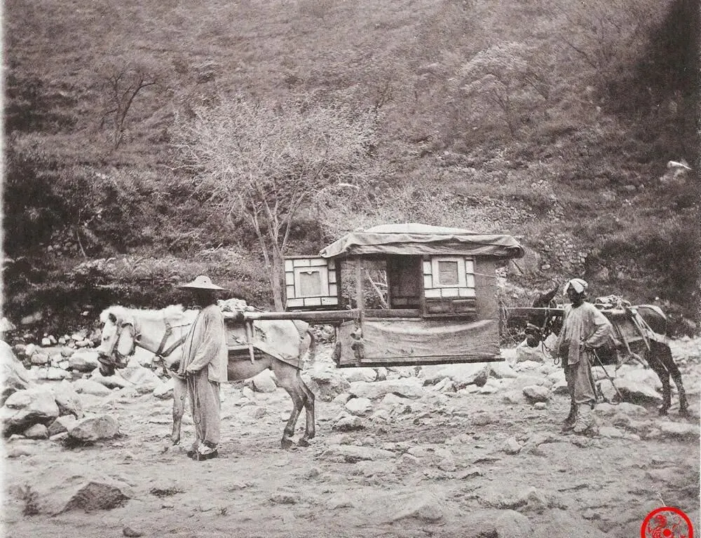 看见这场景心里就想乐,这种轿子用骡子前后各架一头,轿身抬起来像漂在半空,北方乡下赶长路,坐这样一截,不光减了颠簸,还真有点舒坦劲,我奶奶总说村里有钱有事的才舍得雇一回,骑在骡驮轿里看景,人想窗外的天,还能跟轿夫拉两句闲话,城市再热闹也是街外生活走来的。