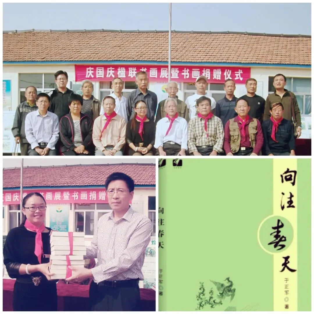 2013年国庆节期间,业余作者于正军向家乡小学——潍坊经济开发区双杨店小学捐赠他的文学作品集《向往春天》。