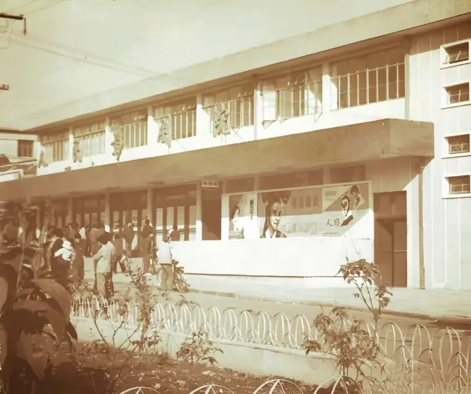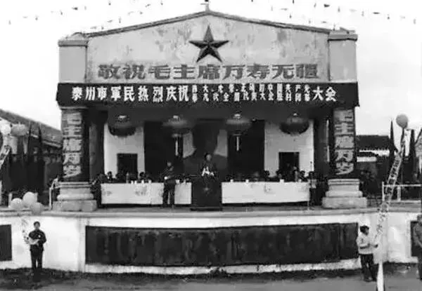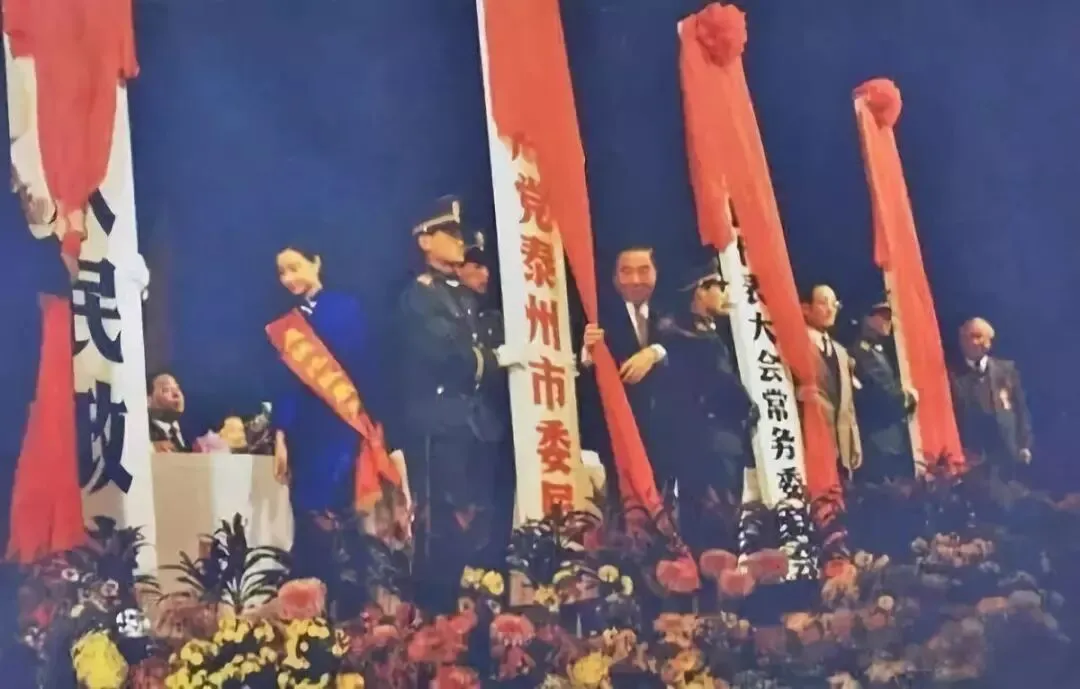 1956年3月,梅兰芳来泰演出,摄于天福绸缎局门口