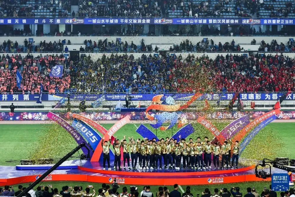 2025年11月,泰州队夺得首届江苏省城市足球联赛(苏超)总冠军,以 “黑马” 之姿逆袭夺冠。