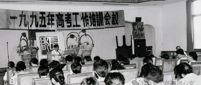 这不是考生的镜头,却很重要。1995年的高考工作培训会,说明高考从来不是只靠考生一个人硬撑的事。出题、监考、考务、保密,每一环都得有人守住。横幅、礼堂、麦克风,这些老物件摆在那里,能看出当年的郑重。高考之所以让人信服,也因为总有人在看不见的地方把规矩立住。