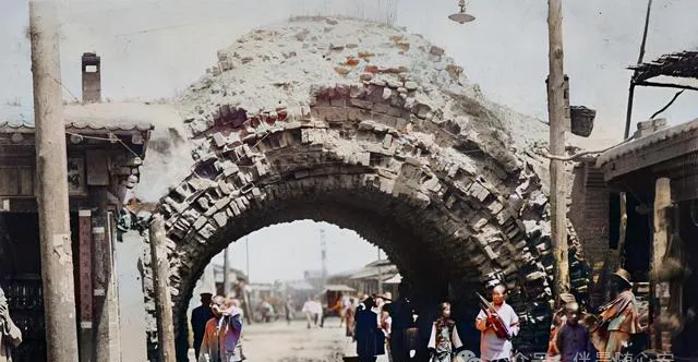 这座门洞看着像旧城门,也像街口留下的一段老关隘。砖石都塌得厉害了,下面的人却照样穿行。那时候的路,不讲究宽敞平整,能过车、能过人、能接住一天的买卖,就算顶用了。这样的门洞,连着的往往就是一整片老街烟火。
