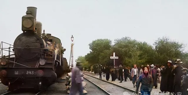 蒸汽机车停在站边,人群散在铁轨旁,这就是近代东北很典型的一幕。铁路把城和城、矿和港、乡下和市场都拉近了。以前出门靠腿、靠车、靠牲口,后来有了火车,赶集、运货、谋生,节奏一下就快了。站台从来不是看风景的地方,是讨生活的地方。