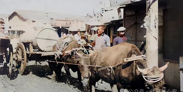 这辆牛车拉着大桶,从泥路里碾过去,车轮和牲口身上都带着一股实打实的辛苦。旧时东北不少地方,牛马车就是运输主力,送水、拉货、运柴草,全靠它。现在看它慢,可那时再慢也得走,因为一家人的吃穿用度,多半就压在这车上。