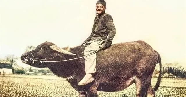 这个场景太熟了,少年笑得贼灿,一个人斜跨着坐在老黄牛背上,裤腿沾着泥,鞋子松垮垮的,秋收没忙完就偷溜去田埂边玩,家里大人在头头骂“别骑坏了牛”,他一点不在意,还用草棍挠挠牛背,这头牛重得很,是全家伙计的老命根子,小时候谁家有头牛,那是踏实心底的安全感,现在拖拉机一响,牛就少见了,小时候骑牛游田边,笑声能飘到村头去。