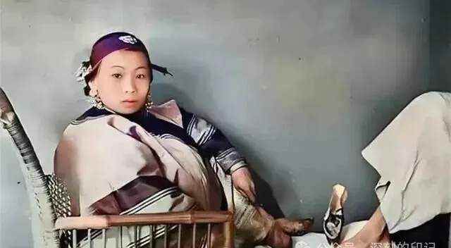 房里这位姑娘靠在竹椅上,眉眼往上挑着却不见一丝舒展,那条看着有些夸张的小脚裹得紧紧的,往椅背上一搁,整个人姿态别扭,围巾斜搭肩头,盘发上点缀银花钗,这种女人出门要靠家里扶着,奶奶见了总摇头,说“体面是体面,可走路还不如俺们庄稼媳妇”,以前裹脚是身份,可看久了真觉得别扭。