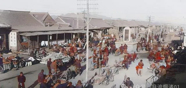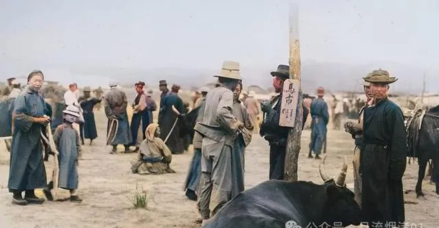 图中这挂着“马市”的木牌,就是以前专门做牲口买卖的地界,这地方地上没啥花头,脏兮兮的沙土地,牛马在旁边卧着,大人穿长衫、戴礼帽,一个个围成圈,谁也不挤谁,气氛也不混乱,买方眯眼盯着牲口,卖方手一挥,嘴里开始盘道,小时候听老人说,碰上大市,光牲口的叫声就能把人带远,不像现在全是喇叭声,早市连个围栏都没有,钱都在袖头里掏。