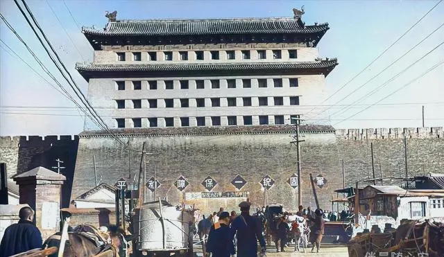 老照片上色以后,城墙不是冷冰冰的灰,反而有点温度。那种旧旧的土黄、青灰,看久了像旧棉袄、老木柜,都是用出来的颜色。