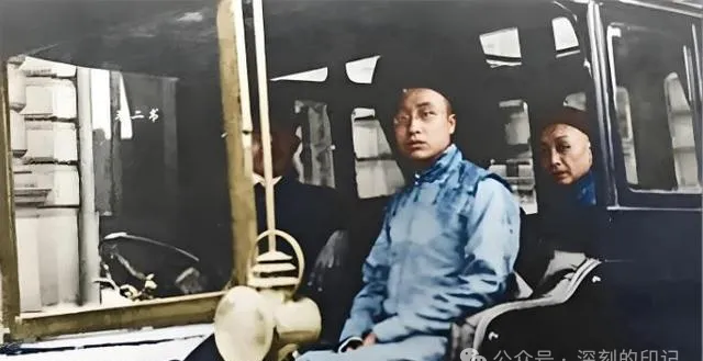 这张照片是车门敞着,清朝人和长辈端坐的镜头,有点意思,外头一只喇叭大喇咙鼓着眼球,那就是“车来了”的标配,年轻人在边上,坐得笔直,手恰好搭在膝头,里面长者偏着身子,谁也没朝镜头看,彩色一上,衣服冷蓝,脸上的纹路真出来了,小时候爸说“会坐的人啥时候都不打岔”,老照片最耐看的,其实就是这些刻在身上的老分寸,不刻意摆,却处处规矩,“不靠不歪不乱伸”,全在一身压实了。
