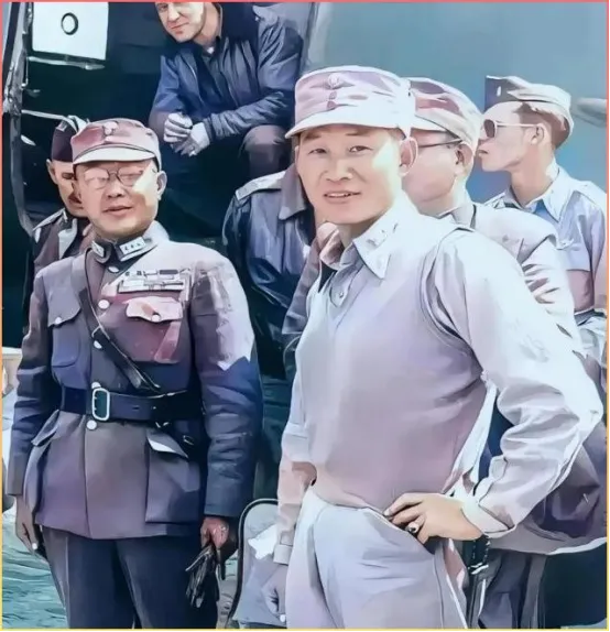 再看这张彩色照片,虽然色彩有些失真,但依然能看出当年的场景。几位军官站在一起,有说有笑的样子。那个年代能拍彩色照片已经算是挺先进的了,可见拍摄时机的重要性。照片里的人物穿着统一的军装,戴着军帽,站姿笔直,一看就受过严格的军事训练。时光荏苒,这些曾经叱咤风云的人物,如今只能在照片里寻找他们的身影了。