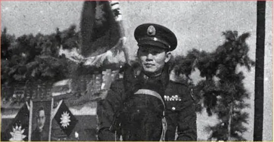 这张黑白照片里的军官显得格外精神,背景是庄严的旗帜和装饰。从军装的款式和徽章来看,年代应该在上世纪中期。那个时候拍照可是件大事,得穿上最好的军装,选个最正式的背景,拍出来的照片才能拿得出手。看这架势,照片里的人物军衔肯定不低,可能还担任着重要职务呢。