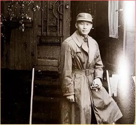 最后这张照片里的军官一身浅色风衣,腰间扎着皮带,手里还拿着东西,看起来正准备出门或者刚从外面回来。这种抓拍式的照片在那个年代其实不多见,大多数都是摆拍的正式照。从穿着打扮和气质来看,这位也是个有故事的人物。