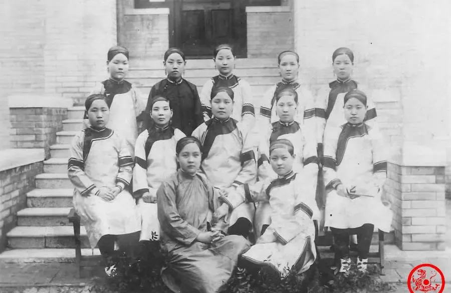 图中这一群穿着齐整的女学生,就是传说中晚清女子学校毕业班,十来个人排在石阶上,头发梳得溜光,一色的长袄大袖,脚边一双双小巧鞋子点在砖上,边上还有一位老师模样的人坐着,气场不小,以前女孩子念书压根轮不到排座,晚清才刚开口子,这能拍个合影,已经是一大家的荣耀。奶奶以前提过,家族有个远房的姑娘考进学堂,全村出去看热闹,说那衣服都不敢碰脏,气派着呢。现在谁还会在意这一身打扮,校服、连帽衫,份量不一样了。