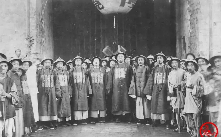 一排穿官袍的,帽子底下脸都是正儿八经的,贡院门口照张集体照,少不得是考试的时候才见开的门,乡试举人全靠这队人管着秩序安排,小时候在戏台上总能见唱官服的,真进贡院见着还真有点怵人,那正装气派的劲,现在公务员考试考场也规矩,但再没人穿这么讲究,规矩换了皮。