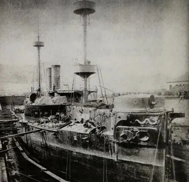 这一艘看着像北洋水师留下的铁甲军舰,粗大的炮塔、烟囱、桅杆,都带着晚清海军的样子。平时它是海上的屏障,船上有人值更、有人擦炮、有人听令。可到了威海卫陷入包围时,再厚的铁甲,也挡不住局势一步步收紧。
