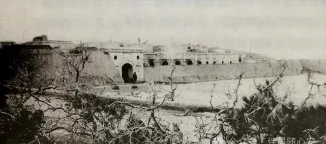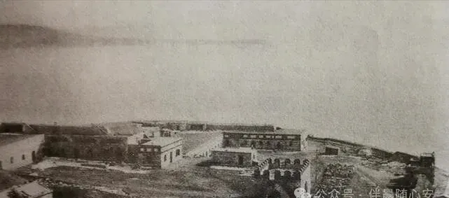 这大概是威海卫一带的炮台或营垒,厚墙、拱门、壕沟,都是为防海防登陆修的。平日里兵丁就在里面起居、操练、守炮位。看着坚固,可真到了炮火连天的时候,墙体也会一点点被震裂。