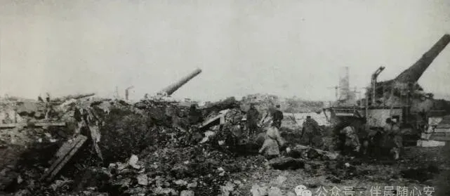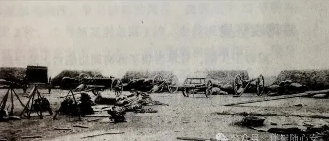 这张旧照里,若有人影、器械或散乱构件,大概就是战后清理阶段的场面。打完以后,最先开始的不是庆功,而是收拾:点人、点炮、点还能用的东西。很多历史,恰恰是在这种低头做事的时候被写下来的。