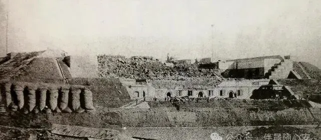 这张多半也是战后拍下的堡垒遗迹。城砖、土坡、缺口,都说明这里曾经抵抗过,也最终被攻破。很多战事真正留下来的,不是冲锋瞬间,而是失守之后一地狼藉的样子。