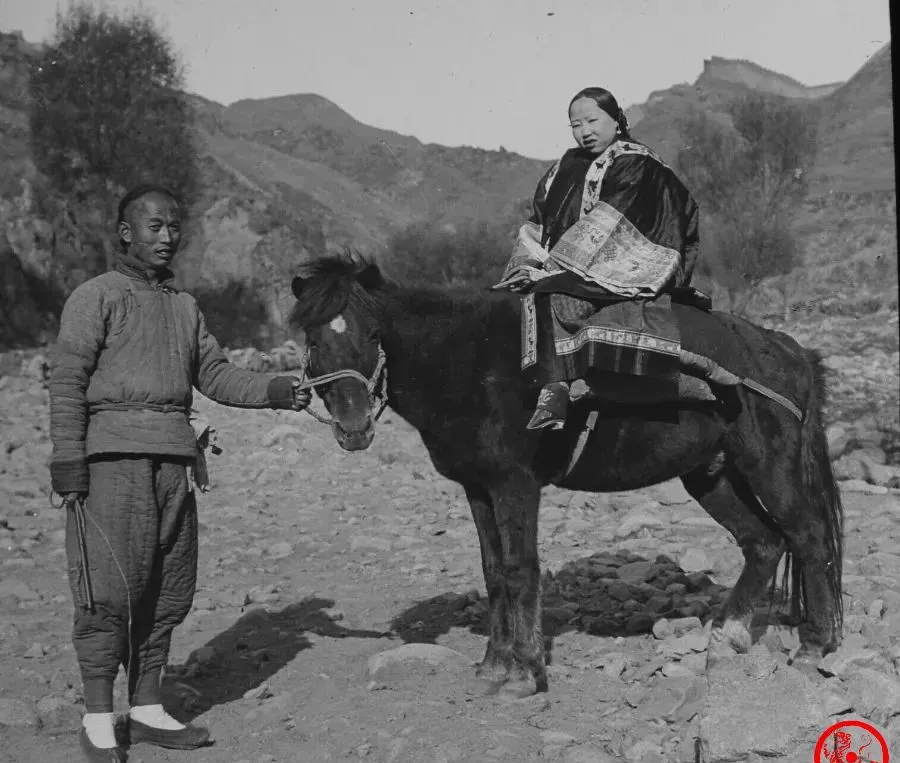 图中穿着厚实大衣裳那位,是当年裹着小脚的清末妇女,坐在骡子背上,衣服上的花边绣得鲜亮,搭配着手里的姿势,坐得笔直,她不是摆给人看的样子,是家里经济宽裕的主,骡子鬃毛乱糟糟,倒有些呆萌,边上男人牵着缰绳,棉袄裤腿扎得紧,不像城里人装束,山路石头渣子多,小脚女人下不了地,得靠牲口驮出门,问我小时候见没见过,倒真没有这种大阵仗,那时候还没到公路村村通,能有牲口骑出门的,一般手里都有点家底。