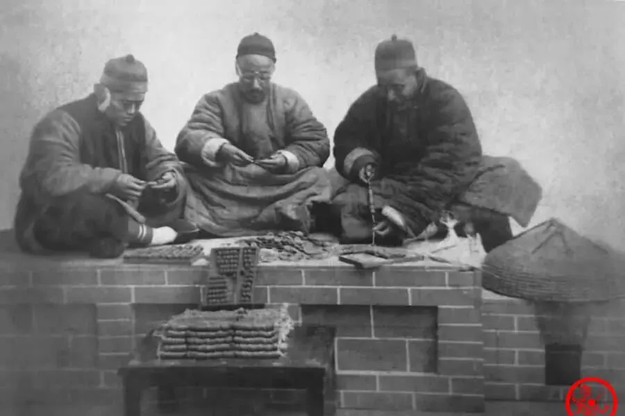 这个景,叫“数钱数到手抽筋”都不过分,三位地主老财坐在高厚的炕头上,脚底下铜钱堆成小山,桌上满满码着,麻绳穿成串,捡了又捡,数了又数,神情认真,生怕漏出一文,炕头铺得整整齐齐,桌上随便一堆就够寻常百姓活两年,听说这钱都是从佃户家收来的,有人背着粮食来,有人掏着碎钱来,地主们把铜钱码得工工整整,“你以为地主快活,其实数钱累到腚都麻”,我爸有次看这照片还拿这个玩笑。