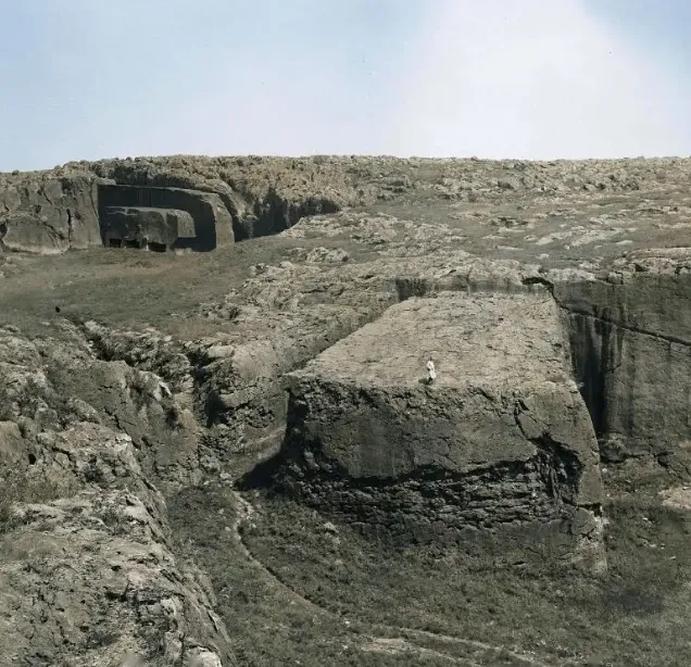 ▲阳山碑材,注意看碑材石面上有一个路人,一番对比,可见碑材体量之大