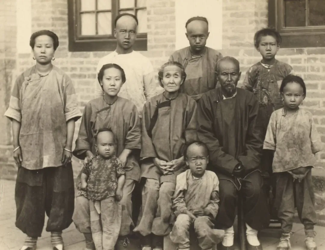 最后这张,一大家老小站坐一起,脸上神情板着,几个孩子穿的衣裤又脏又窄,有的脚型尖细一看就是裹过小脚,老人坐在中间看着镜头,眼神中透着那会儿的精气神,奶奶曾说,照一张全家福得提前半天收拾打扮,还得请会照相的,摆好姿势谁也不能懒,这样的场面一年到头才见一次,照片留得住,人却早已走散。
