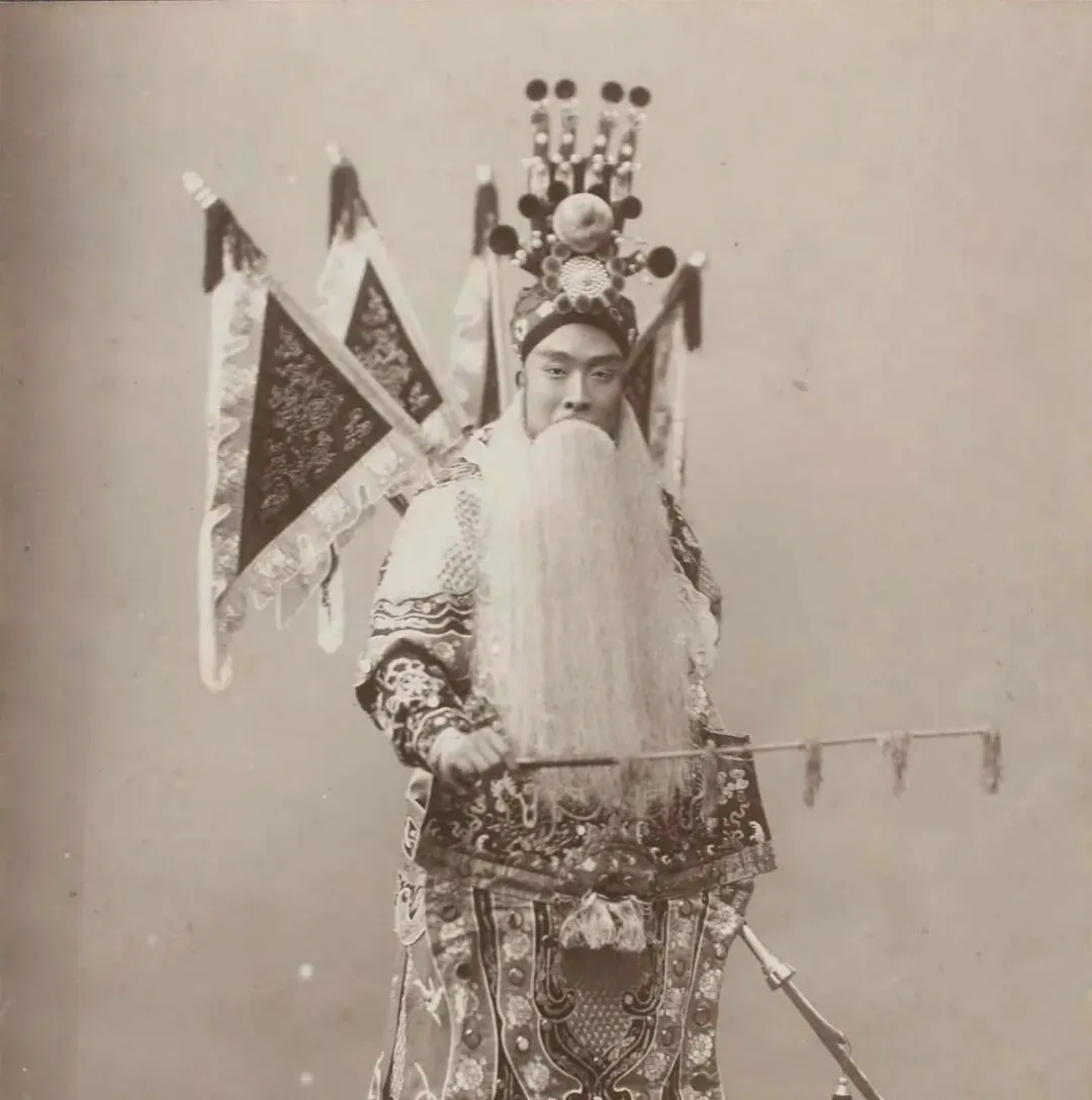 这一看就是戏曲行当里的扮相。头冠、长髯、靠旗、手里的道具,一样都不能少。以前人看戏,不光听唱腔,也认这些穿戴。谁是忠臣,谁是老将,往台上一站,观众心里就先明白了。那会儿的热闹,很多都在戏园子里。