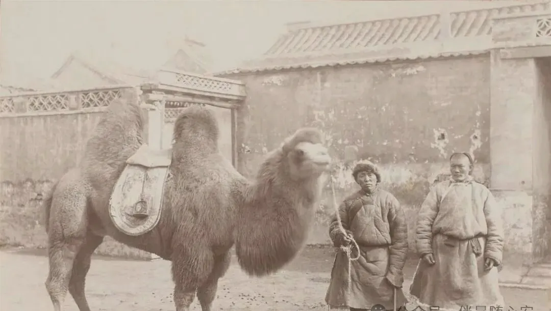 这头双峰骆驼很显眼,旁边站着牵骆驼的人。今天看稀奇,过去在北方一些地方却是真正的运输帮手。它能驮重、耐走,商旅往来、货物转运,都离不开它。一个地方的街面上出现什么牲口,往往也说明那里怎么做买卖、怎么过活。