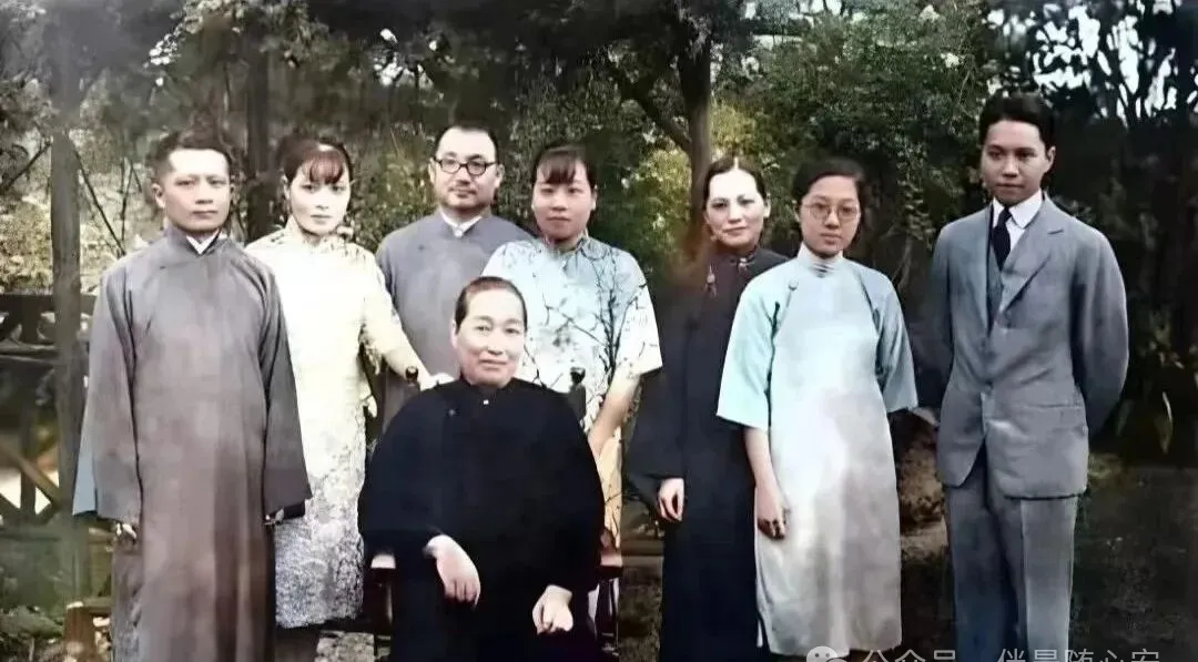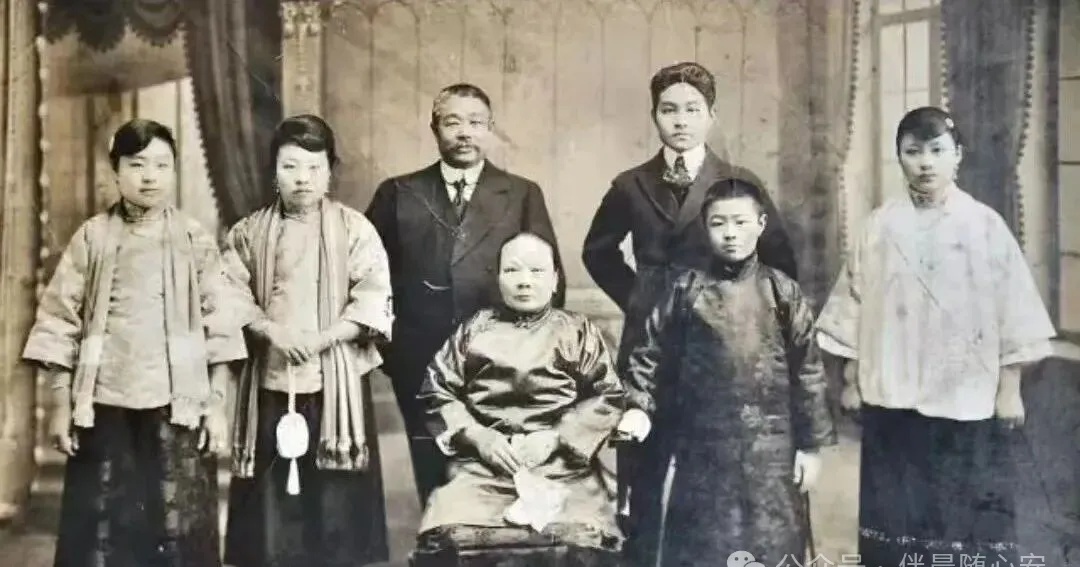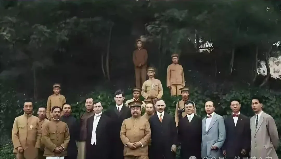这张合影很有意思,前排中式服装、军装和西式礼服站在一起,第一眼就像几个时代碰了头。那时候照相不是随手一拍,大家会站定、收肩、正脸,看镜头像看一件郑重的事。一张照片,就是一次身份、关系和时代气息的定格。