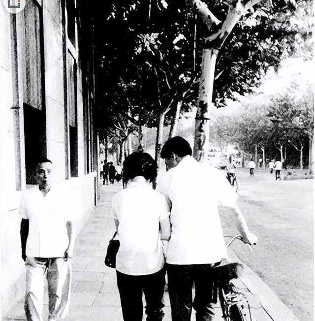 那一对背影,肩并着肩走在老马路上,这种拉着手推着车的相好,在街边藏着点什么,那年头谁也不敢明目张胆亲密,连眼神都留意着,树影斑驳,路宽人少,肩膀挨着胳膊贴着,一路无言里全是默契。旁人扫一眼装做没看见,那就是敢渡不过的青春劲儿,现在街上小情侣花样多,谁还会躲着人走大路呢,不一样了,就是不一样。