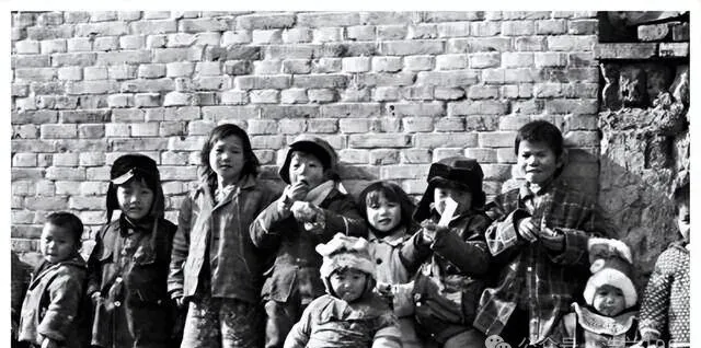 这些并排站的孩子们,大头帽,补丁棉袄,脖子里还绕着毛线围巾,个个兜里揣着糖纸、煤球、核桃,有小的半蹲着,嘴边叼着啥,边上大点的还教他说快板,冬天阳光贴着砖墙照下来,那股子筋劲就是冻不透,翻个跟斗再拍两下手,家里喊回来吃饭也照样慢悠悠磨蹭,光是瞅见这队形,耳边就能听见笑声。