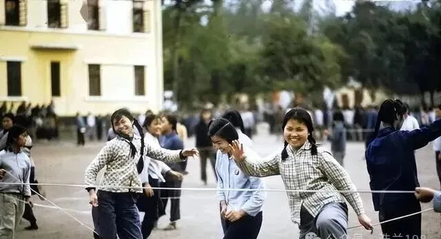说起跳皮筋,女生操场上的主角,一根绳子三个姐妹,谁数步谁看口号,一跺脚,一蹦腿,咧嘴笑开花,学校里放学后全是哒哒踩地声,后头还跟着几个揶揄的男同学,围了一圈,输了的要输小橡皮,赢的头顶全是光,有时候班主任一出来,大家一哄而散,又过片刻偷偷凑回来,这种趁热闹的日子,还有几回能遇上。