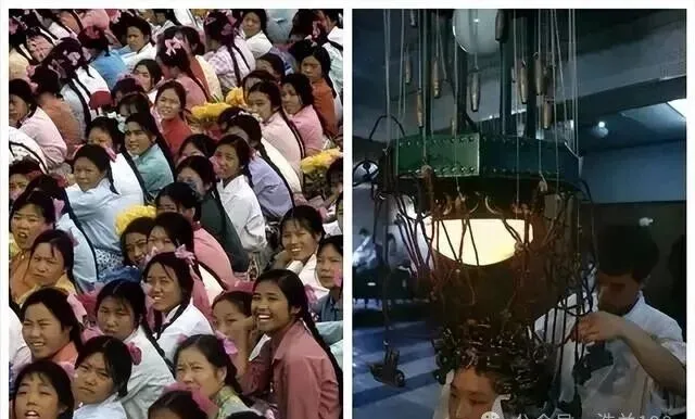 这张照片一看就知道,谁都想有一头大波浪,女人们穿着粉色或花色衣服,头上系蝴蝶结,转头都是自信的笑,坐在理发店里烫发机像蜘蛛似的吊一圈铁夹,烫一颗头要花大半天,烫出来自己照镜子偷乐,奶奶说那时候谁家媳妇如果烫个头,马上就成了弄堂主角,比现在弄美甲烫染还威风。