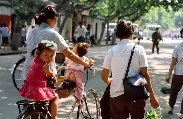 骑自行车上街,后头铁架坐着娃娃,一手扶着小辫子,一手扯着妈妈衣角,二八大杠轧着水泥地,嘎吱嘎吱的慢慢悠悠过马路,见人还扬下巴示个意,现在的电动车、轿车堆在一起,这种全家出门的场景都淡了,那时候自行车可是个大物件,谁家有一辆真跟日子开了花。