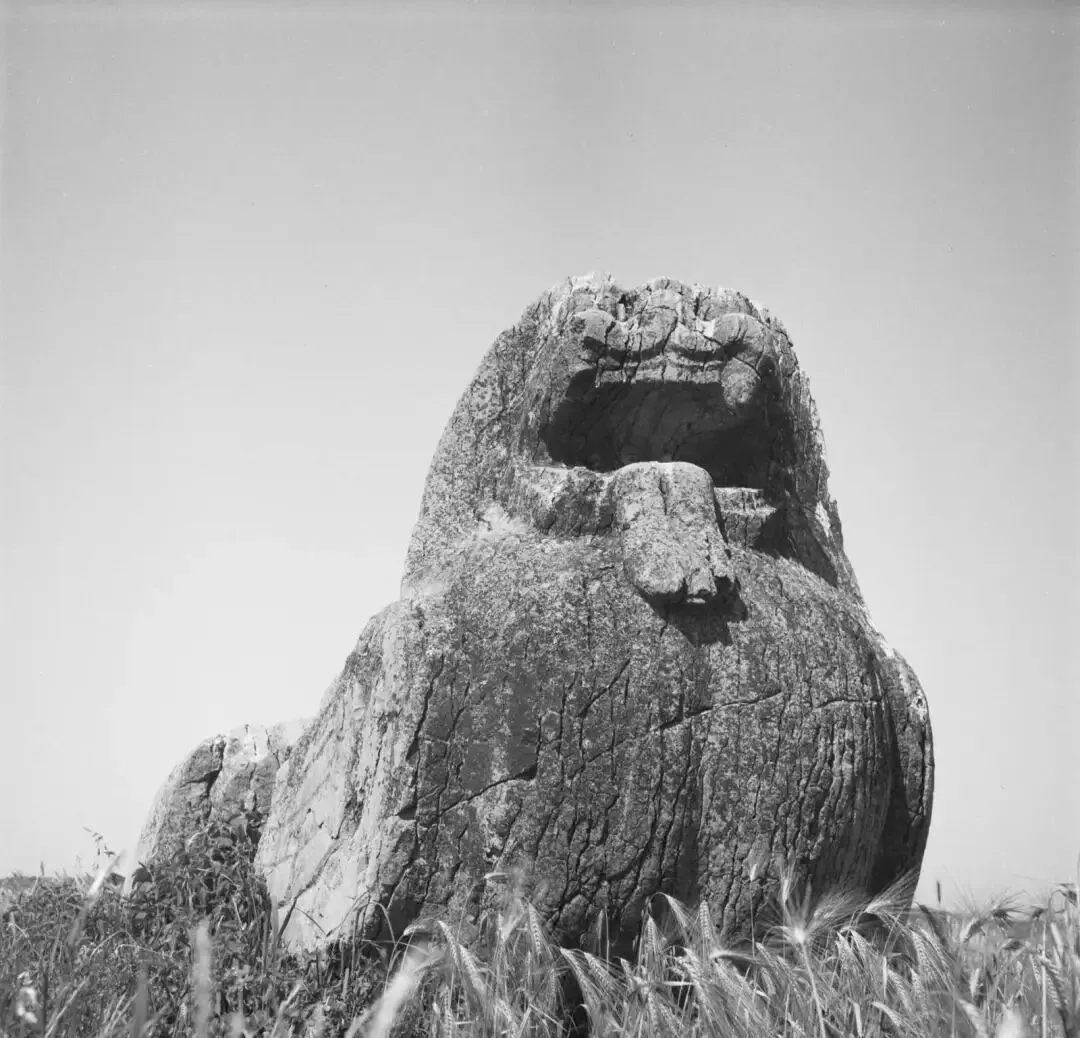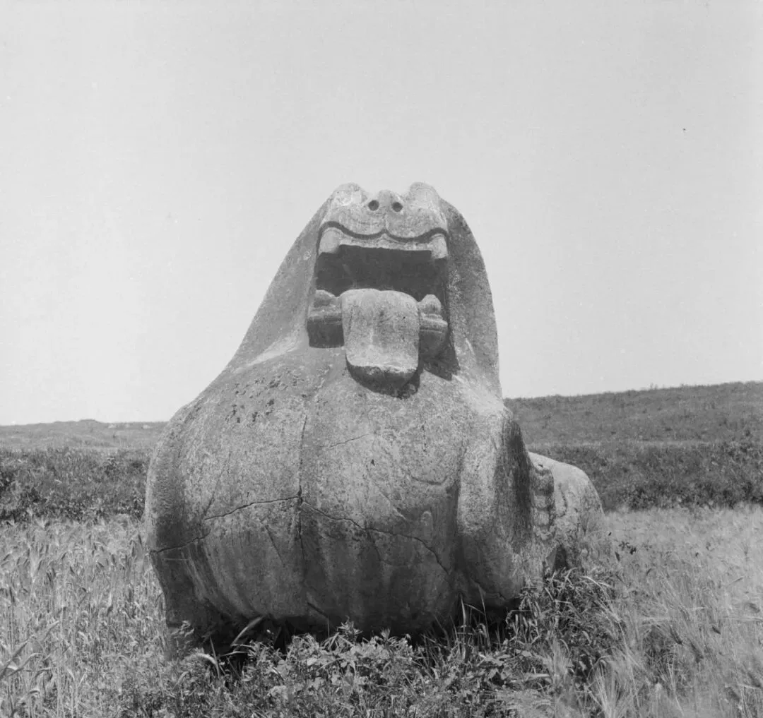 这个嘴张得大大的石兽,巨大的鼻孔和鼓着的眼珠让人一眼难忘,石头缝隙里冒着野草,像是守门的老将军,小时候村里老人总笑说“谁要敢晚上一个人来,石兽会睁眼”,其实石头多年都这样蹲着,风吹雨淋石皮早脱了几层,依然挺在田地头。