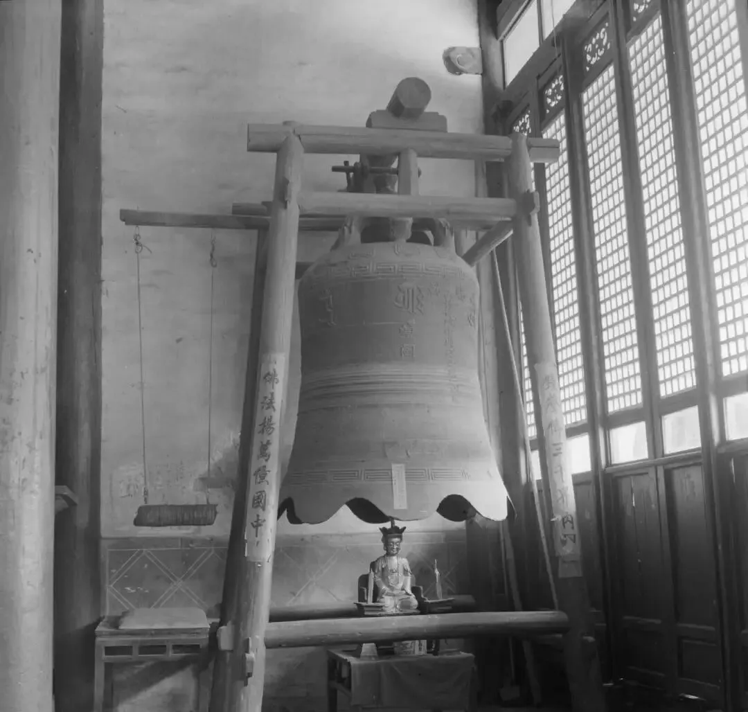 这个大钟以前在寺庙边上是最显眼的家伙,钟身高大,鼓架也是粗木头糙绳子缠着,平时没人敢随便敲钟,只有年关佛事才会“当”的一记,整个庙里庙外都能听见,幼时在钟下晃悠,总幻想自己能拉动那根大锤子,后来才知道,庄重的声音背后是很多讲究。