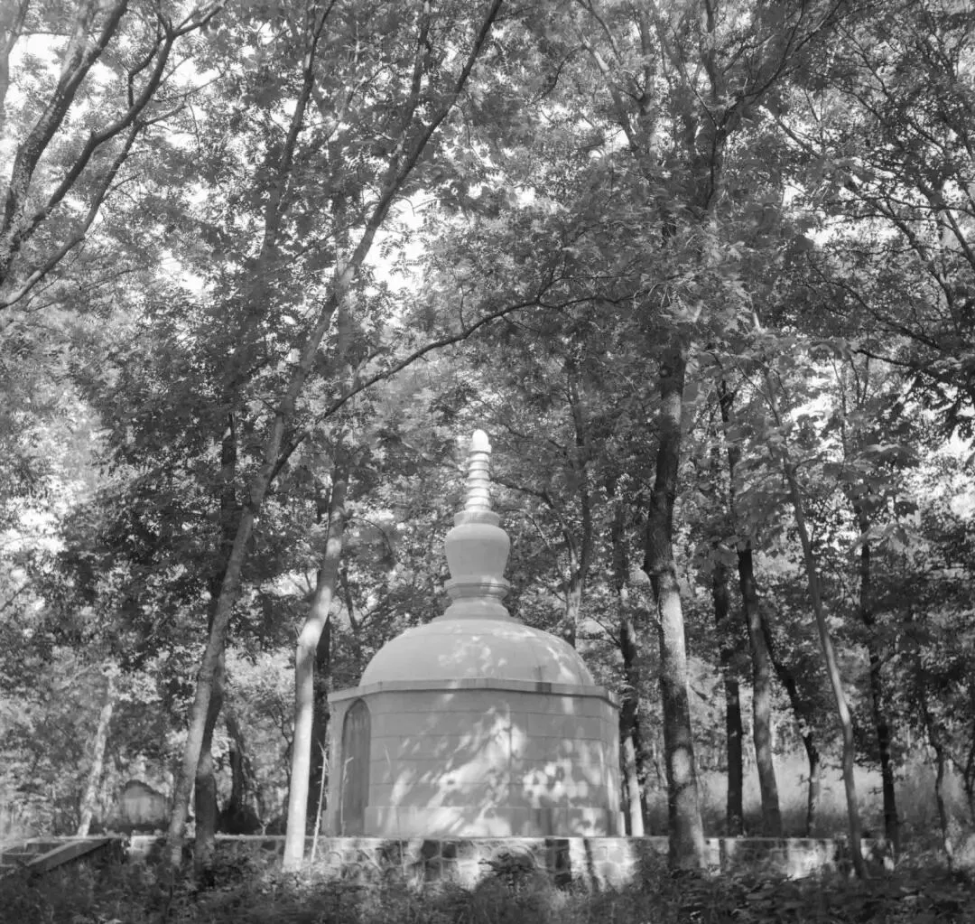 最后一张是在树林深处的白色圆塔,塔身雪白光滑,树影落在上头斑驳,样式有点像西域的佛塔,小时候从林子里钻出来,猛然遇见这么个塔,既奇怪又有点神秘,父辈们说有的塔底下真就藏了骨灰,外地人才会觉得新鲜,这种老建筑就是这样,慢慢就留在一代又一代的记忆里。