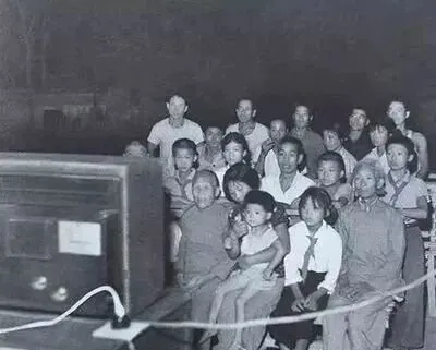 图中这群人围着的家伙,正是那年代村里最抢手的黑白电视,机器外壳是四四方方深色壳子,前面贴着个大玻璃板,背后还接着粗黑的天线线,白天根本没人碰,等天一黑,不用通知,全村老小屁股就往这电视对面一坐,谁家有点座就够高兴半天,老人小孩一块挤,凳子没了,地上席位也有人抢,根本不嫌累;