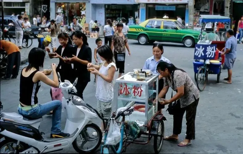 图一:2004年,成都街头一景,成都进入20世纪已经明显折射出现代都市的样貌,照片中赫然映入眼帘的是现代时尚美女广告画,前面人们悠闲地坐在街边的凳子上。图二:2004年,成都街头一景,这张照片做了虚化处理,镜头中一个藏传佛教的僧人穿着僧服正举着一个相机拍摄着啥,眼睛里透露出专注和好奇。图三:2004年,成都街头一景,照片中一处商业综合体已完成主体落成,下边是三层左右的商场,20世纪初,成都的发展进入快车道。图四:2004年,成都宽窄巷子一角,2003年,成都市宽窄巷子历史文化片区主体改造工程确立,2008年开街。历史上,宽窄巷子曾是年羹尧修筑的满城所在地。图五:2004年,成都街头一景,照片中一个中年男人让孩子骑到脖子上正经过一处建筑工地外围。图六:2004年,成都街头一景,正值夏天,人们穿着夏装正在街头购买冰粉,这也是当地的很受欢迎的小吃。图七:20世纪初,成都曹家巷一景,照片中人们穿梭在巷道上,两边是铺着灰瓦的平房商铺。图八:20世纪初,成都曹家巷一景,这里是露天市集,两边排满了售卖农副产品的摊位,熙熙攘攘,烟火气十足。图九:20世纪初,成都曹家巷一景,这里是露天市集,两边排满了售卖农副产品的摊位,熙熙攘攘,烟火气十足。图十:20世纪初,成都曹家巷一景,这张照片拍摄了一处角落,老年摸样的人们正在搓着麻将。 2004 年的成都,三环已通车两年,成为城市新的边界,但三环外仍是 "城乡结合部",稻田、菜地与新建楼盘交错分布。市中心天府广场周边高楼林立,天府大道宽阔笔直,高新区管委会大楼孤独地矗立在尚未完全开发的南部新城。府南河经过综合整治,成为市民休闲散步的好去处,河滨公园绿树成荫。 春熙路、盐市口仍是商业中心,太平洋百货、王府井等大型商场人气旺盛;锦里古街以清末民初建筑风格成为文化旅游新地标,350 米长的街道上,茶馆、小吃店、手工艺品店林立,与武侯祠相互映衬。 2004 年的成都,正处于加速发展的关键期,既保留着 "慢生活" 的传统,又展现出 "快发展" 的活力。城市开放度不断提高,外来人口增多,带来多元文化;同时,成都人 "安逸" 的生活态度不变,茶馆依旧是市民社交的重要场所,麻将声、龙门阵声此起彼伏,构成独特的城市声景。